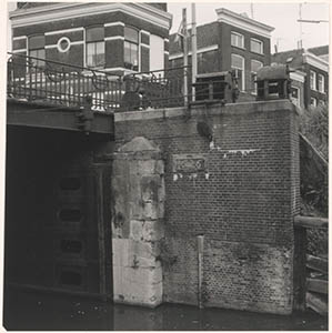 Noordoostzijde van de Zuidersluisbrug. In de muur een …