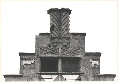 De topgevel van het huis De Gulden Os aan de Groenmarkt …