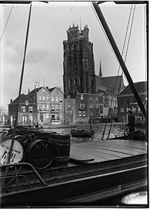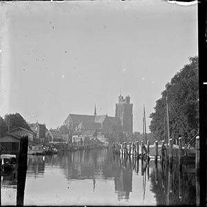 De Grote Kerk gezien vanaf de Bomkade over de Bomhaven. …