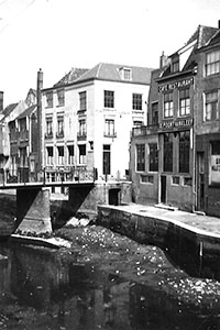 De Wijnhaven vanaf de Nieuwbrug richting Wijnbrug. Rechts …