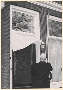 Onthulling van een gedenkteken boven de voordeur van het …