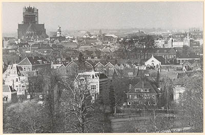 Panorama op de binnenstad vanaf het bureau Gemeentewerken …