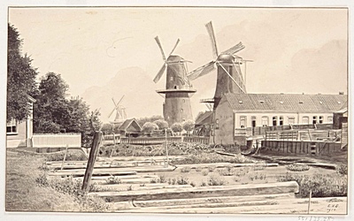 Houthaven, gezien vanaf Lijnbaan, met molens …