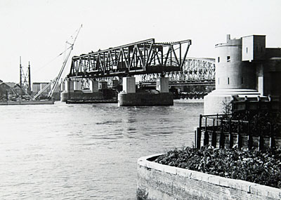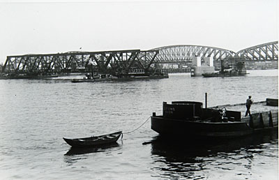 Het eerste deel van de overspanning van de verkeersbrug …