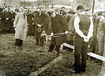 Burgemeester de Gaay Fortman steekt de eerste spade voor …