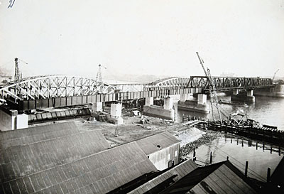 Overzicht van de in aanbouw zijnde verkeersbrug over de …