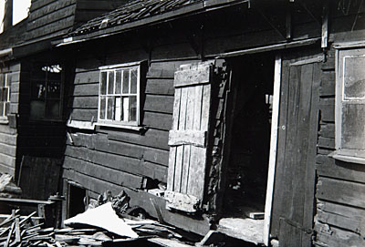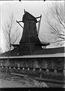 Ingang van de houtloods onder molen De Vlasbloem van de …