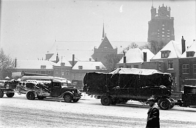 Vrachtwagens op de Buiten Walevest langs de ingang van de …