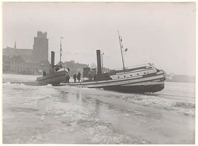 De Veerdienst I vast in het ijs op de Oude Maas ter …