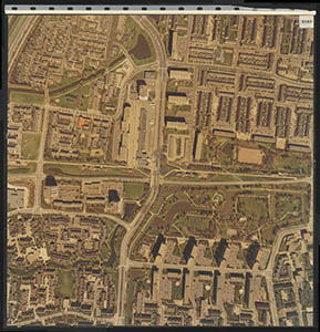 Luchtfoto van Sterrenburg. Linksboven de Rondweg. …