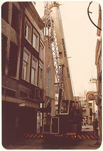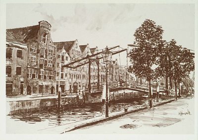 Damiatebrug met pakhuis uit 1858. Dubbele ophaalbrug van …