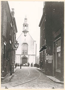 De Visbrug, gezien van de Groenmarkt naar de Waalse kerk …