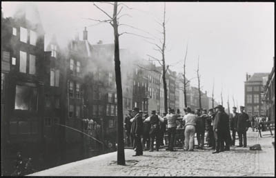 De brandweer met hulp van enkele pontonniers bestrijden …