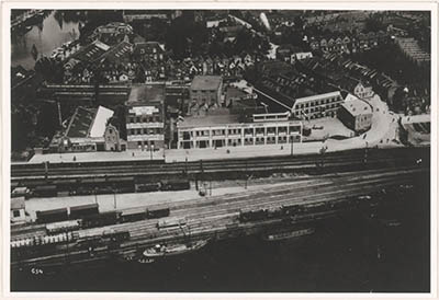 Luchtfoto vanaf de Spoorweghaven naar het noorden over …