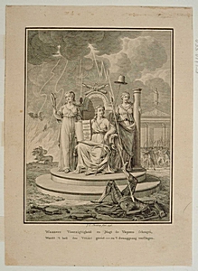 Zinneprent op de vrijheid. De Vrijheid zit op de troon …