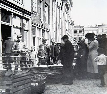 De Visstraat, gezien naar de Voorstraat. Links …