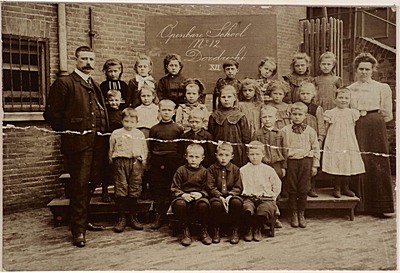 Klassenfoto van de Openbare School No. 12 aan het Kromhout