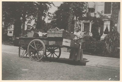 Groentevrouw Saartje Bergijk met haar handkar met …