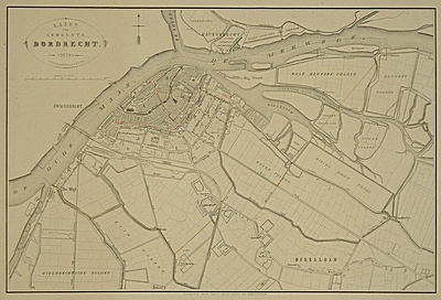 Plattegrond van de stad Dordrecht en een deel van het …