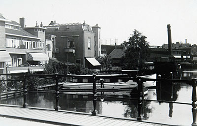 Gezicht op het Achterhakkers vanaf de Sluisbrug, met op …