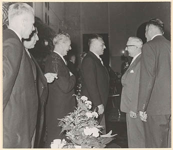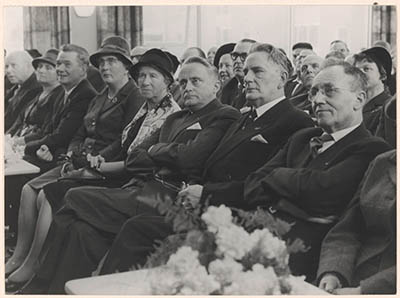 Genodigden luisteren naar een toespraak tijdens de …