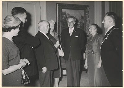 Koningin Juliana en burgemeester Van der Dussen in de …