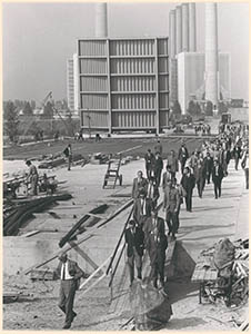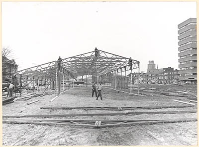 Opbouw van de hallen aan de Spuiboulevard voor Expo Dordt …