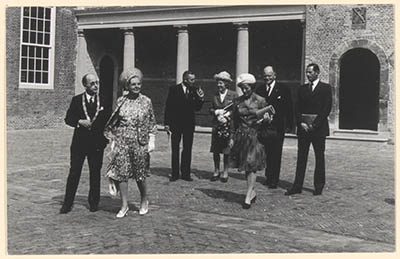 Koningin Juliana en burgemeester Van der Lee voor de …