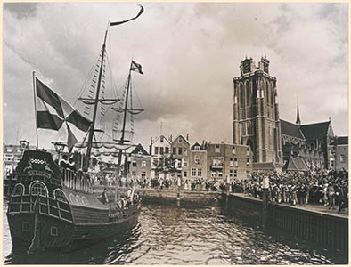 Het 16e-eeuwse zeilschip 'De Admirael' uit Brielle vaart …