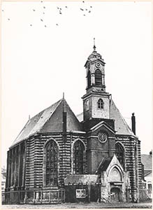 De in verband met de restauratie in de steigers staande …