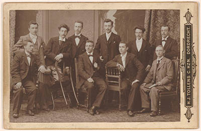 Groepsportret van een onbekend gezelschap jongemannen; 4 …