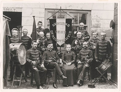 Het muziekkorps van het Leger des Heils met instrumenten …
