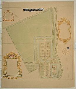 Plattegrond in kleur van de buitenplaats Het Huis te …