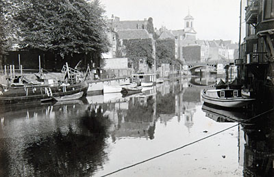 De Voorstraatshaven vanaf de Visbrug naar het stadhuis en …