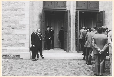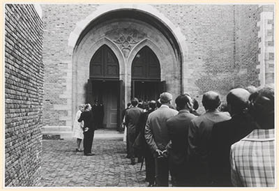 Genodigden bij de toreningang van de Grote k/erk tijdens …