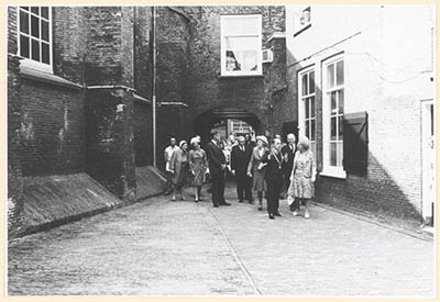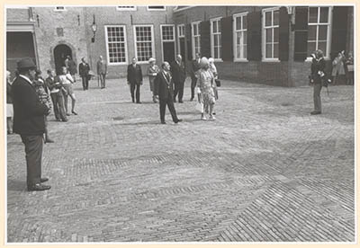 Koningin Juliana en burgemeester Van der Lee in het Hof …