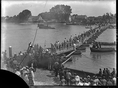Een door de pontonniers gebouwde pontonbrug over de …
