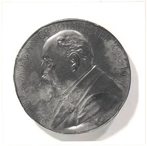 Voorzijde van een penning met de buste van Simon Marius …