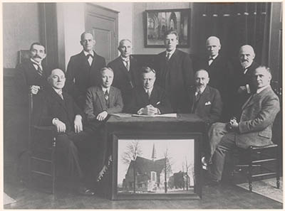 Groepsportret van de bouwcommissie van de (toen) …