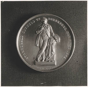 Achterzijde van een zilveren penning, t.g.v. de …