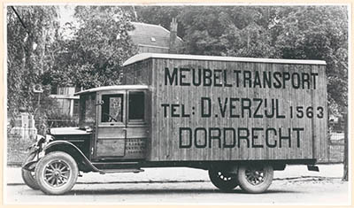 Een vrachtauto van meubeltransportbedrijf D. Verzijl op …