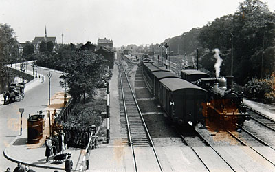 Vanaf de voetgangersbrug over het spoor bij de overweg …