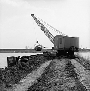 Hijskraan met goederentrein in de Grote Rug Polder