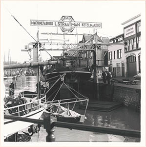 Stand van bierbottelaar F. Braat aan de Wolwevershaven 35 …