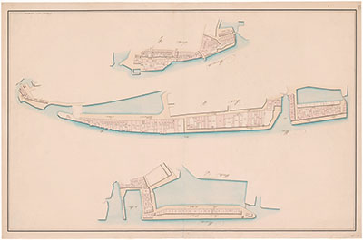 Schetskaart van een plan voor de spoorwegverbinding …