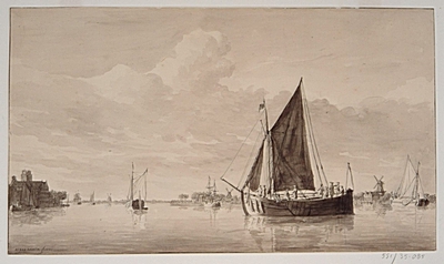 Oude Maas, ter hoogte van Groothoofd, anno 1771. Links …