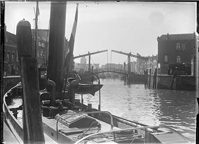 De Wolwevershaven vanaf het Vlak richting Damiatebrug. De …