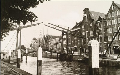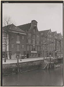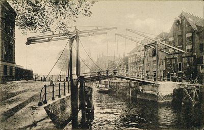 Pakhuizen aan de Kuipershaven nabij de Damiatebrug over …