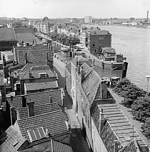 De Wolwevershaven richting Groothoofd. Rechts huizen aan …