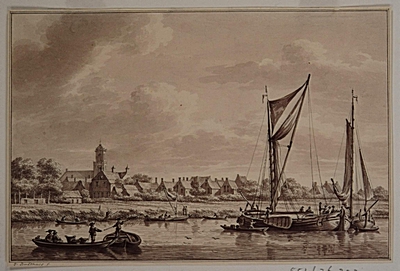 Werkendam, ca. 1790. Dorp en kerk.